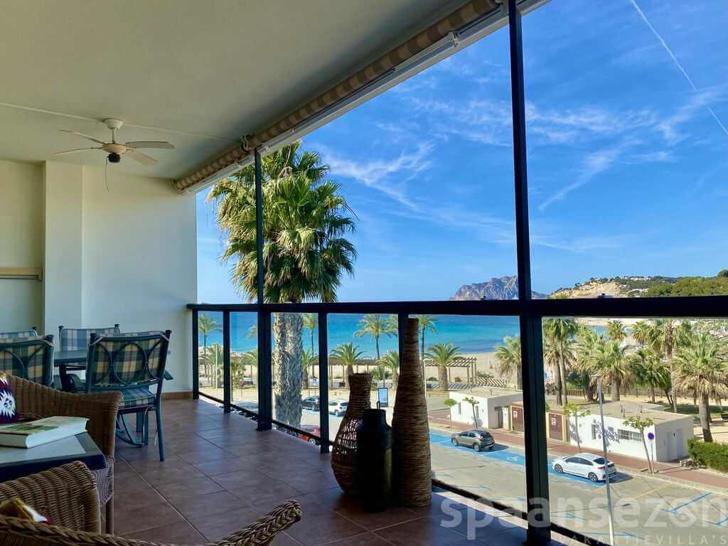 group1-5 personenshower2 Badkamer(s)bed3 Slaapkamer(s)wifiGratis WiFiac_unitAirco (warm/koud)beach_accessPanoramisch zeezichtlocation_onMoraira centrumhome1 woonlaagMeer informatieRuim en luxe appartement direct aan zee in het centrum van Moraira. Met frontaal zeezicht, groot overdekt balkon, moderne open keuken en comfortabele woonruimte. Alles ligt op loopafstand: strand, winkels en restaurants. Ideaal voor wie comfort, uitzicht en een toplocatie wil combineren.