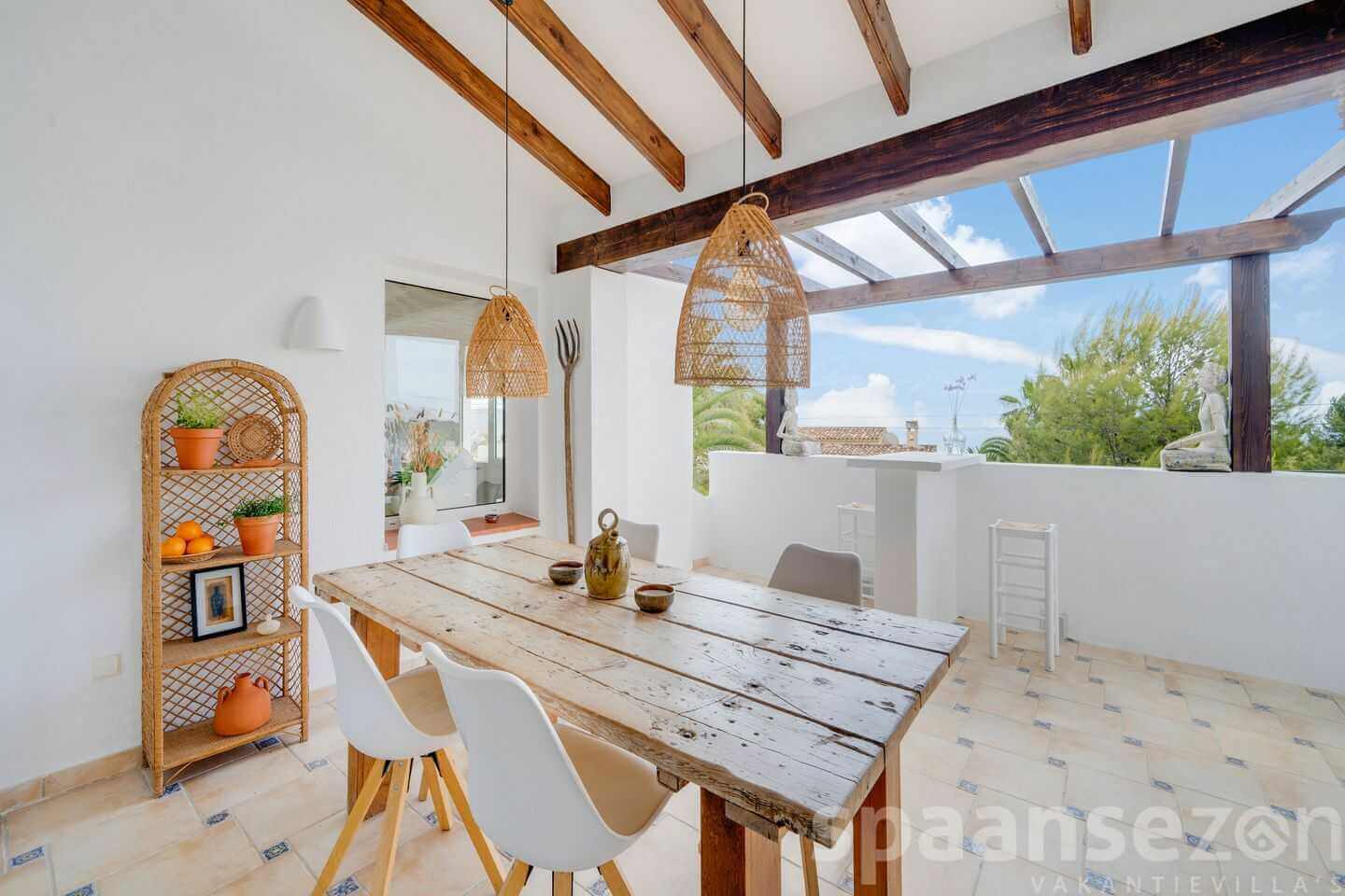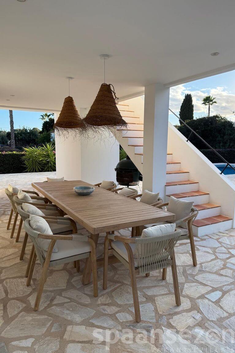 group1-8 personenshower4 Badkamer(s)bed4 Slaapkamer(s)wifiGratis WiFiac_unitAirco (warm/koud)poolPrivé zwembadbeach_accessPanoramisch zeezichtlocation_on3000m Centrumhome3 woonlagenMeer informatieVilla Rosana biedt een privézwembad, overdekte terrassen, buitenkeuken en prachtig panoramisch zeezicht. De omheinde mediterrane tuin met ligbedden, prieel en buitendouche zorgt voor privacy en comfort. Rustige ligging in San Jaime, op korte afstand van het strand, winkels en het centrum van Moraira, ideaal voor een ontspannen vakantie.