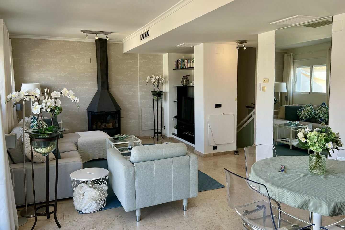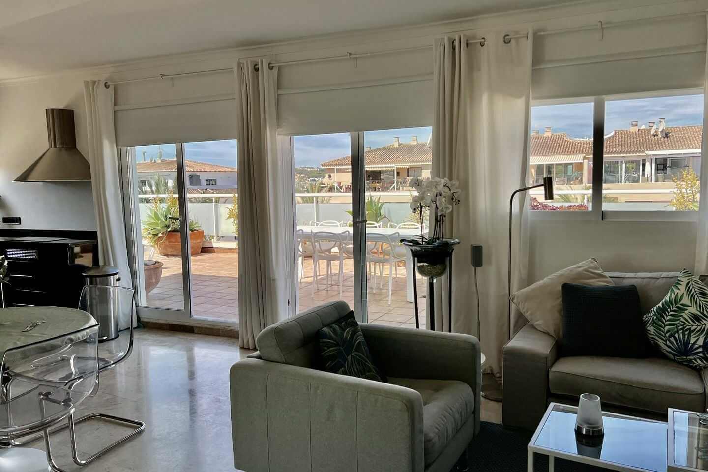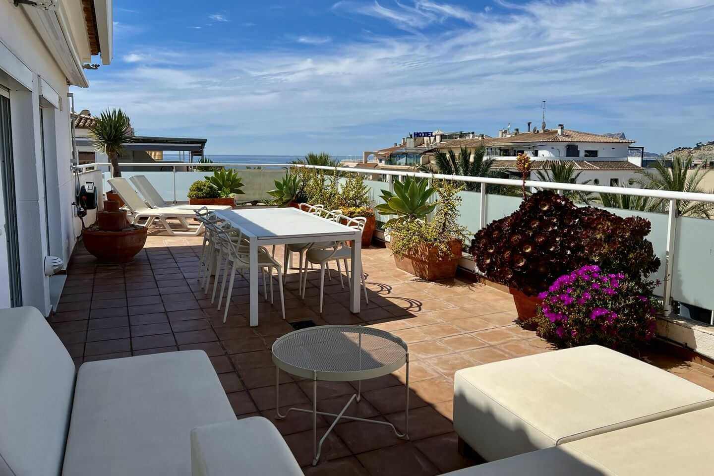 group1-4 personenshower2 Badkamer(s)bed2 Slaapkamer(s)wifiGratis WiFiac_unitAirco (warm/koud)beach_access100m Strandlocation_onCentrum Morairahome2 woonlagenMeer informatieStijlvol penthouse in het centrum van Moraira, op loopafstand van strand, winkels en restaurants. Voorzien van airconditioning, moderne open keuken en een royaal zonnig dakterras met meerdere zitplekken, ligbedden en barbecue. Ideaal voor comfortabel verblijf in elk seizoen.