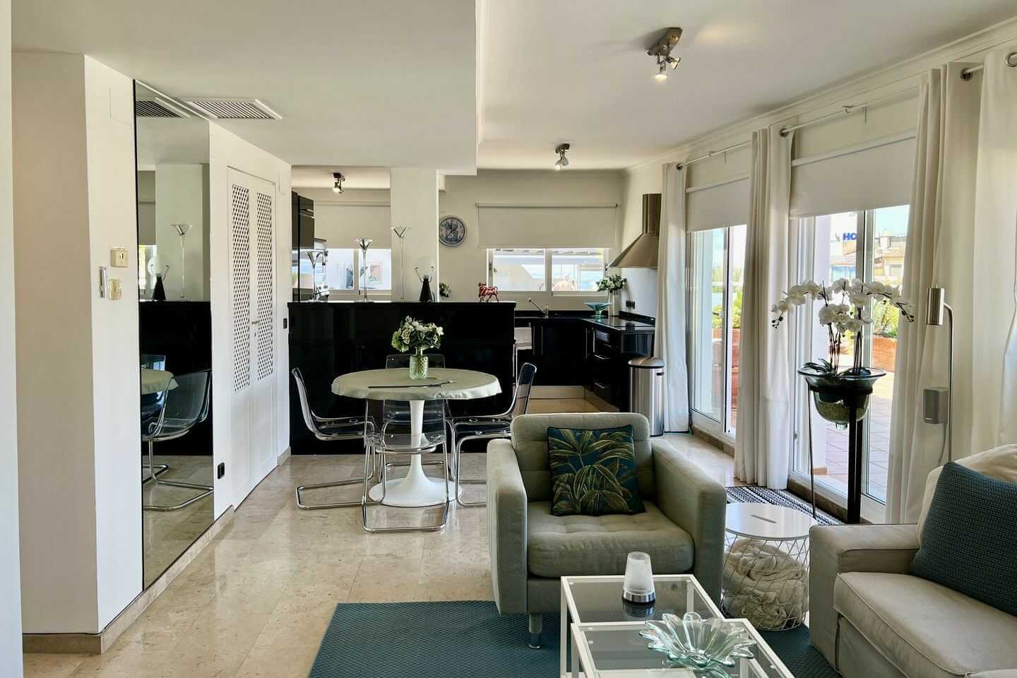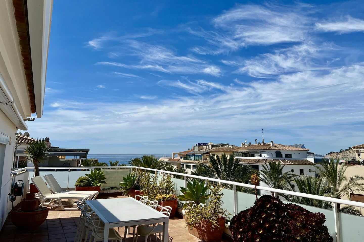 group1-4 personenshower1 Badkamer(s)bed2 Slaapkamer(s)wifiGratis WiFiac_unitAirco (warm/koud)beach_accessPanoramisch zeezichtlocation_on1500m Centrumhome1 woonlaagMeer informatieModern penthouse op de bovenste verdieping, direct aan zee in Moraira. Geniet van panoramisch zeezicht, een ruim zonnig balkon, moderne open keuken en comfortabele woonruimte. Op loopafstand van stranden, restaurants en een sfeervolle kustboulevard. Perfect voor wie rust, uitzicht en een topligging zoekt.