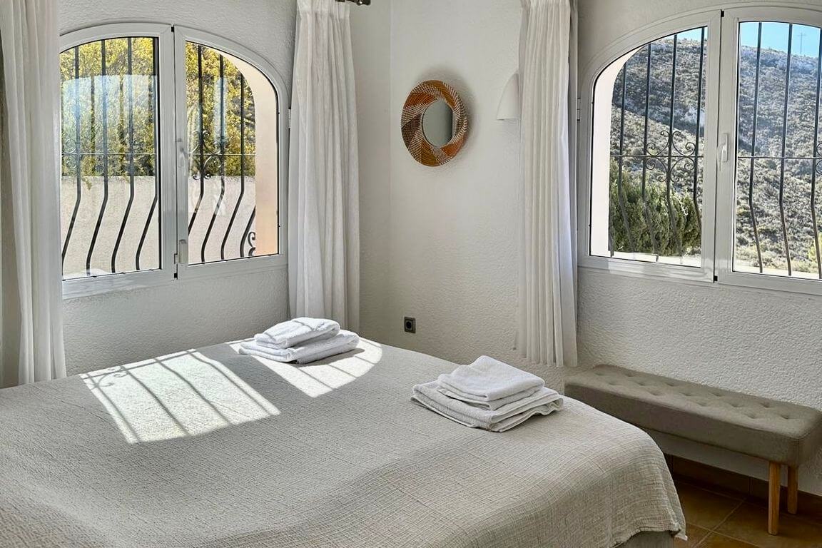 group1-8 personenshower3 Badkamer(s)bed4 Slaapkamer(s)wifiGratis WiFiac_unitAirco (warm/koud)poolPrivé zwembadbeach_accessValleizichtlocation_on3900m Centrumhome2 woonlagenMeer informatieVilla Juntos heeft een privézwembad, overdekt terras met loungehoek en een ruime mediterrane tuin voor volop privacy. Met 4 slaapkamers en 3 badkamers op twee woonlagen biedt de villa ideale accommodatie voor families of groepen. Rustige ligging in Benimeit met prachtig uitzicht over de vallei van Moraira.