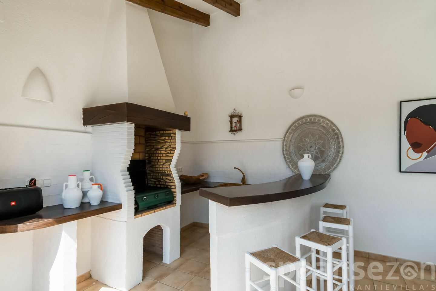 group1-6 personenshower3 Badkamer(s)bed3 Slaapkamer(s)wifiGratis WiFiac_unitAirco (warm/koud)poolPrivé zwembadbeach_accessBergzichtlocation_on3500m Centrumhome1 woonlaagMeer informatieLichte en speelse villa in San Jaime, Moraira, met privézwembad, ruime terrassen en prachtig uitzicht. De villa heeft drie slaapkamers met eigen badkamer, een moderne open keuken, sfeervolle woonkamer met gashaard en smart-tv, en een afgesloten tuin met loungehoek, BBQ, pingpongtafel en dartbord. Ideaal voor gezinnen en rustige vakanties dichtbij golfbaan, strand en centrum.